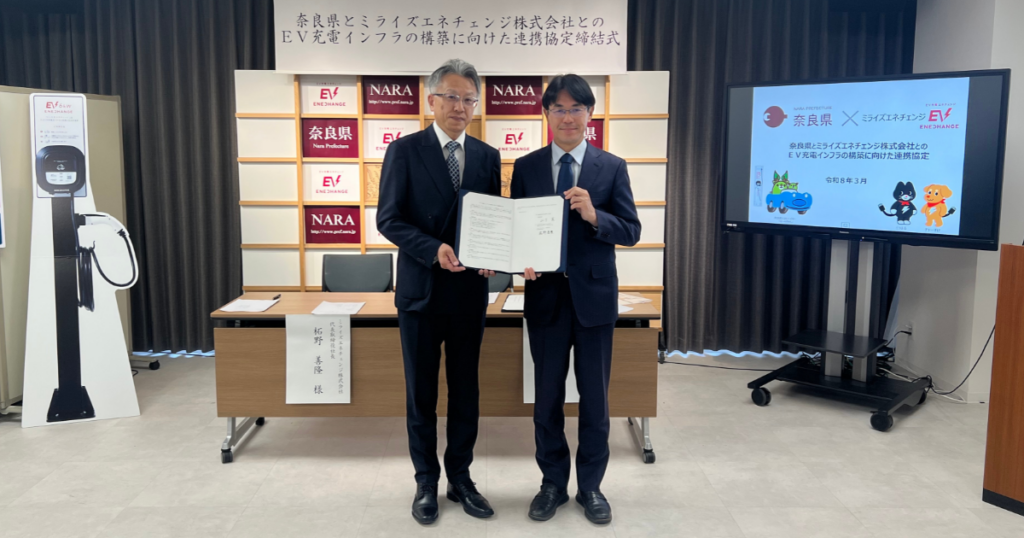 ミライズエネチェンジ、奈良県とEV充電インフラの構築に向けた連携協定を締結|脱炭素社会の実現に向け、官民連携でEV充電インフラの充実を図る